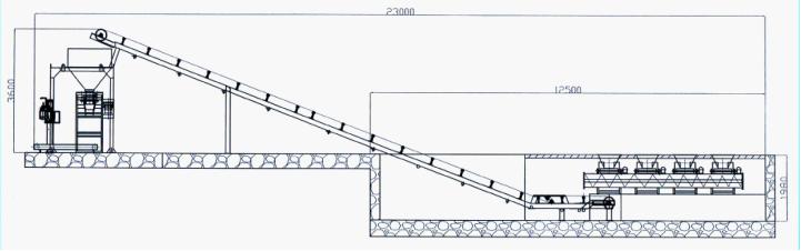 该形式的生产线将系统的配料部分和混料部分也是整体安装在地下,占地面积小,有效节约空间,地面投料方便快捷,操作安全,减少工人节约成本;而且产量大,投资小,电脑控制方便管理,全自动化生产程度;整条线是国内唯一连续型生产线。